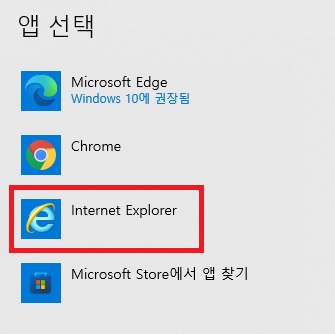 그럼 위와 같은 창이 뜨는데요, 여기서 [Internet Explorer]를 선택하여 설정하시면 됩니다.