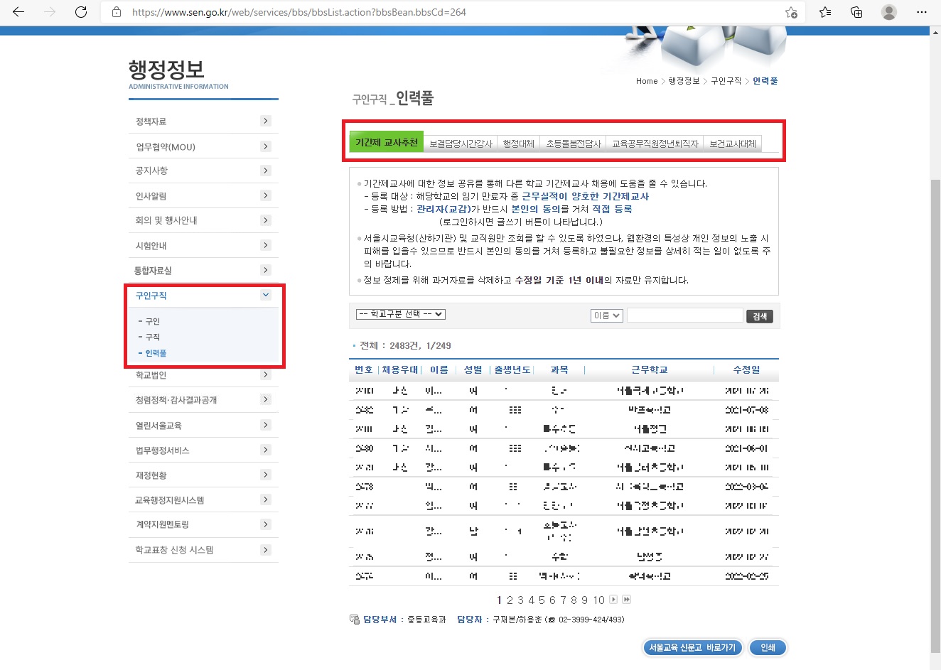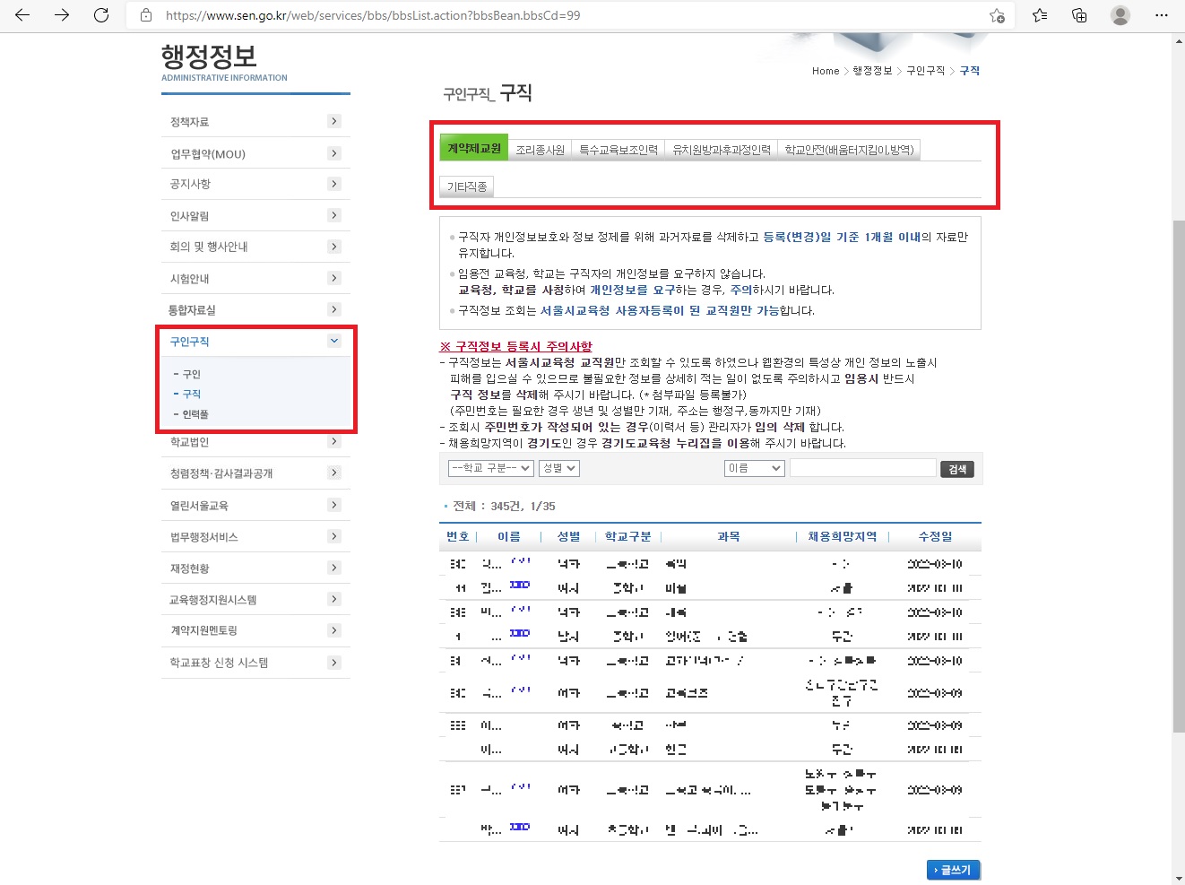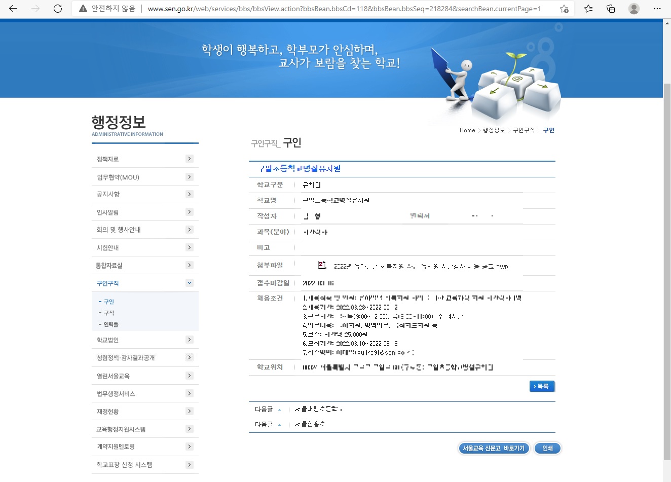 서울시 교육청 홈페이지에서 구인구직 확인하는 방법을 안내드리오니, 서울시 학교에서 기간제 교사, 행정업무 및 시설관리직 등으로 근무를 희망하는 분들에게 도움이 되었으면 좋겠습니다. 또한, 인재를 찾고 있는 채용 담당자분들께서 구직자 정보를 확인하는 방법도 함께 안내드립니다.