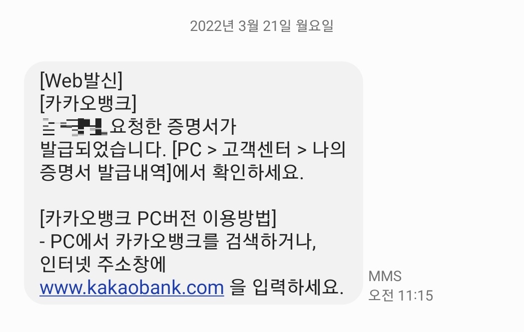 카카오뱅크 증명서 발급