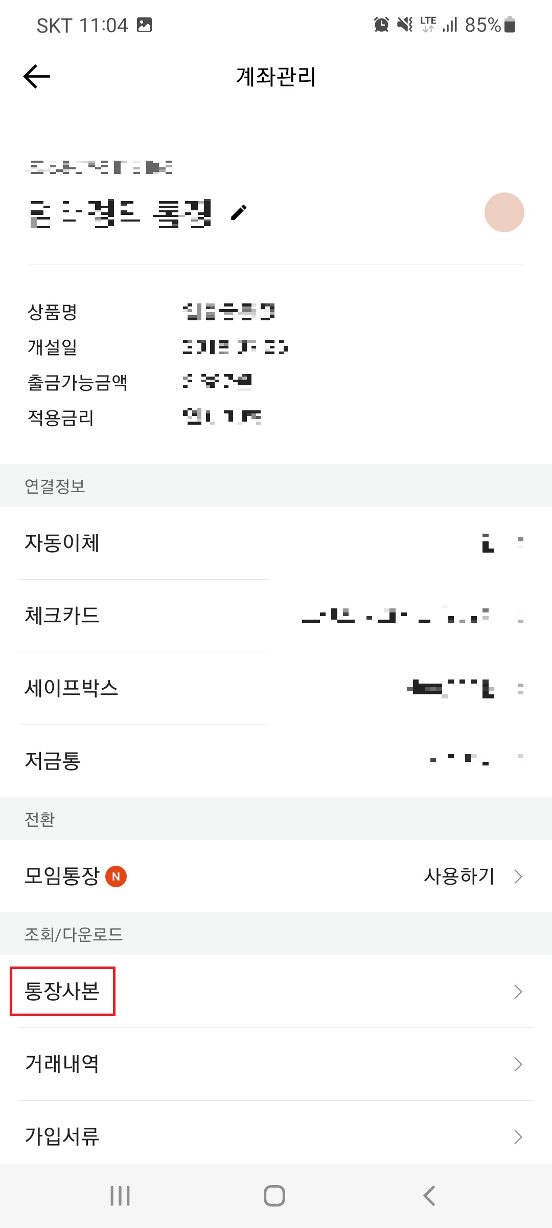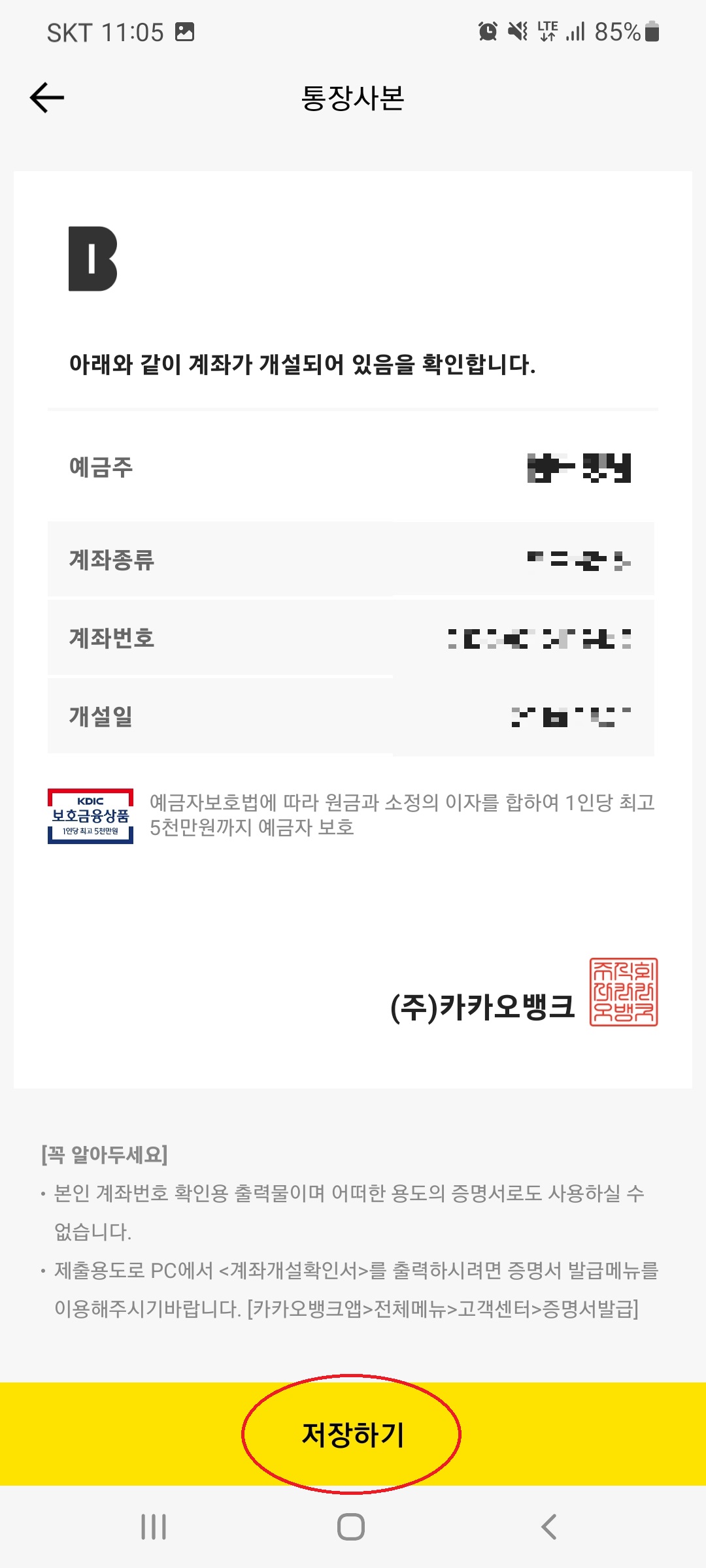 카카오뱅크 통장사본 저장 또는 출력하기