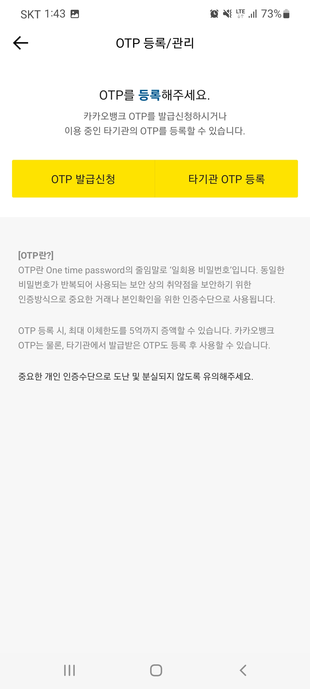 그 이상으로 증액을 원하시면 OTP를 등록하거나, 임시증액을 신청하여야 합니다.