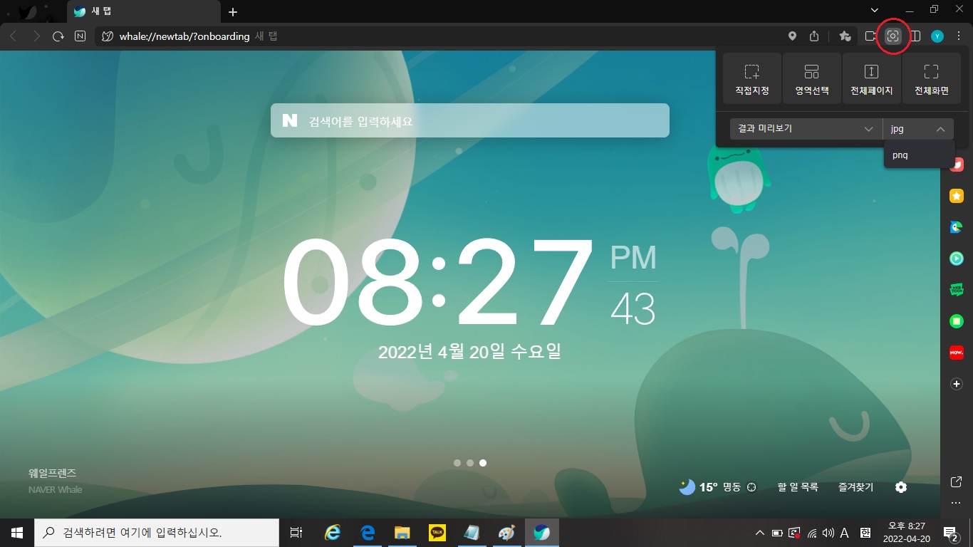 네이버 웨일 화면 캡처하기