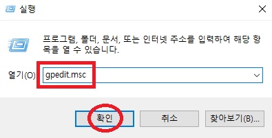 gpedit.msc를 입력하고 [확인]을 선택합니다.