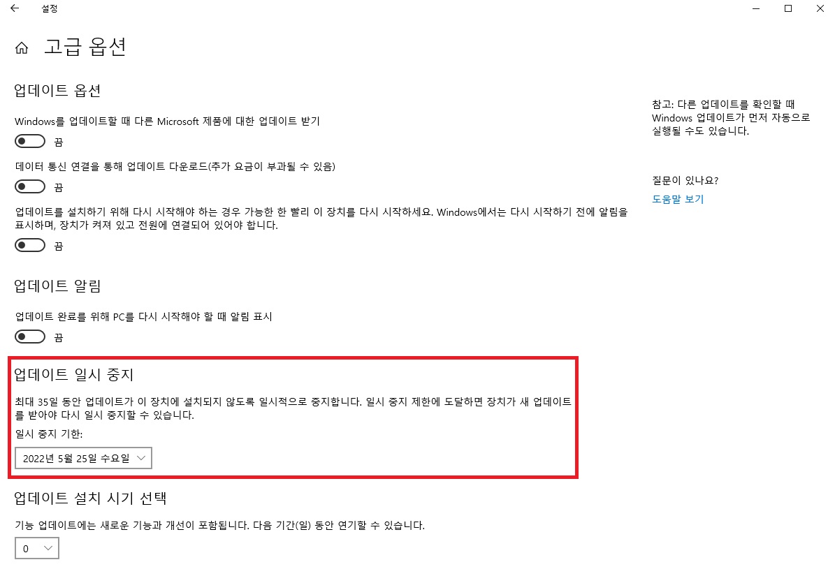 먼저 단기간, 최대 35일간 업데이트를 일시 중지하는 방법부터 소개해드립니다.