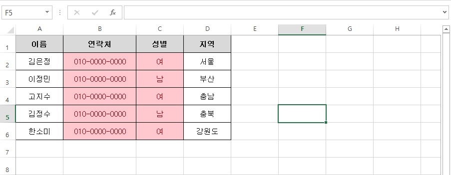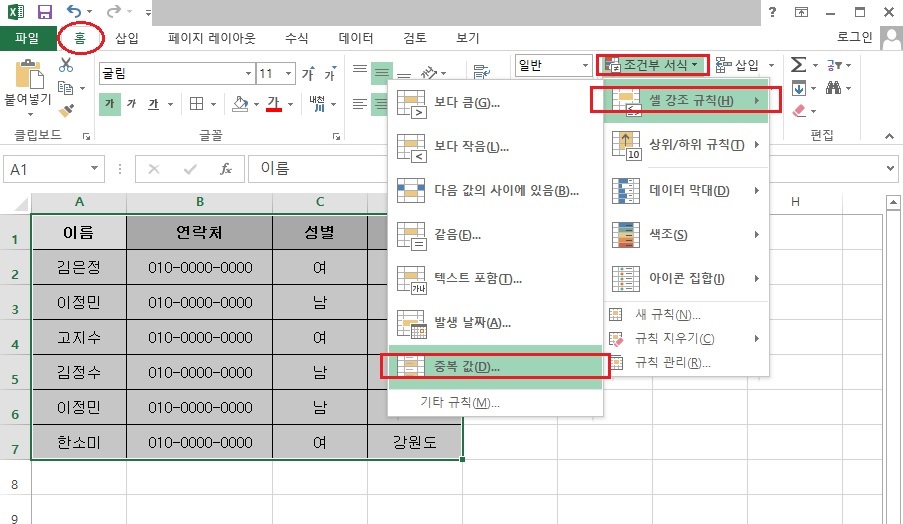 조건부 서식을 이용하여 중복값 표시하기