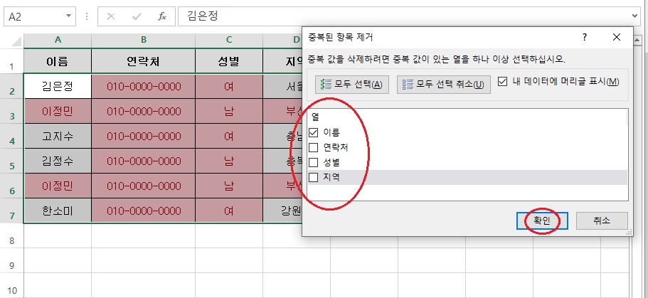중복된 항목 제거 메뉴 이용하기