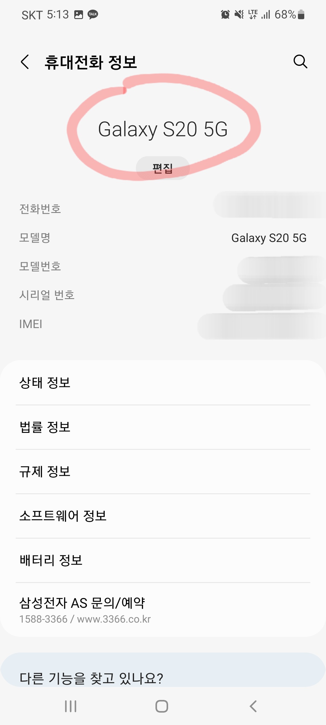그렇다면 휴대폰의 소프트웨어 버전과 기종 확인은 어떻게 할 수 있을까요?