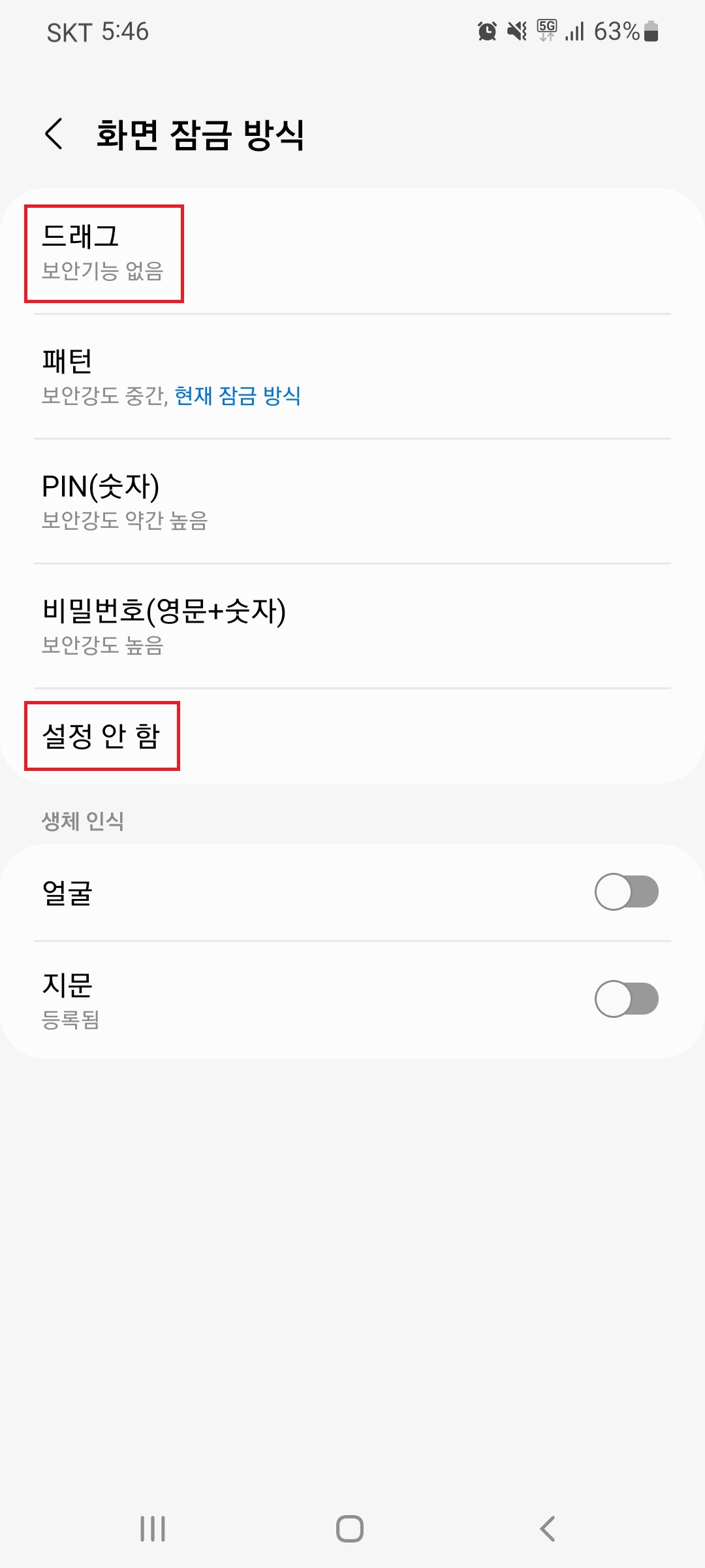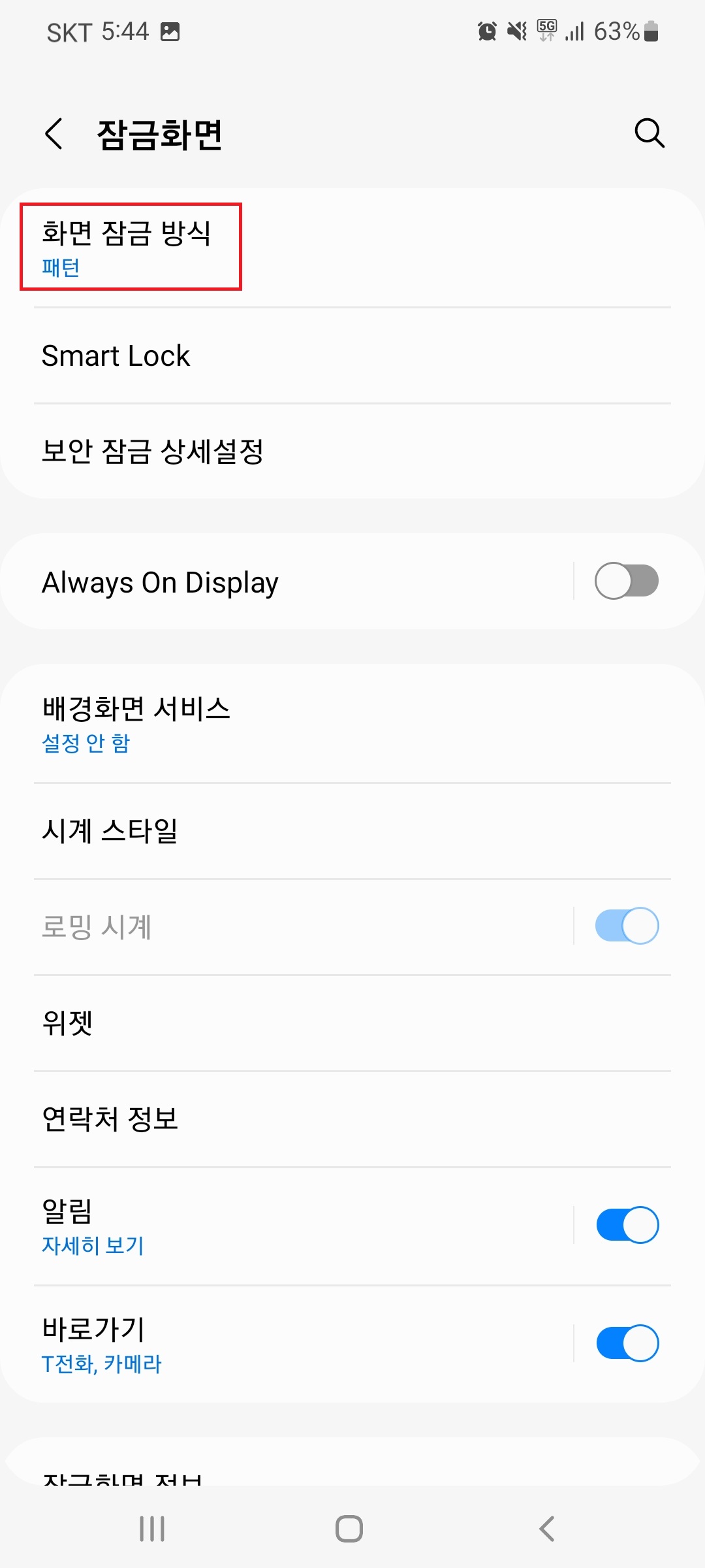 추가로 화면 잠금 방식을 변경하는 방법과 잠금화면을 없애는 방법도 안내드리려 하니 도움이 되시기 바랍니다.